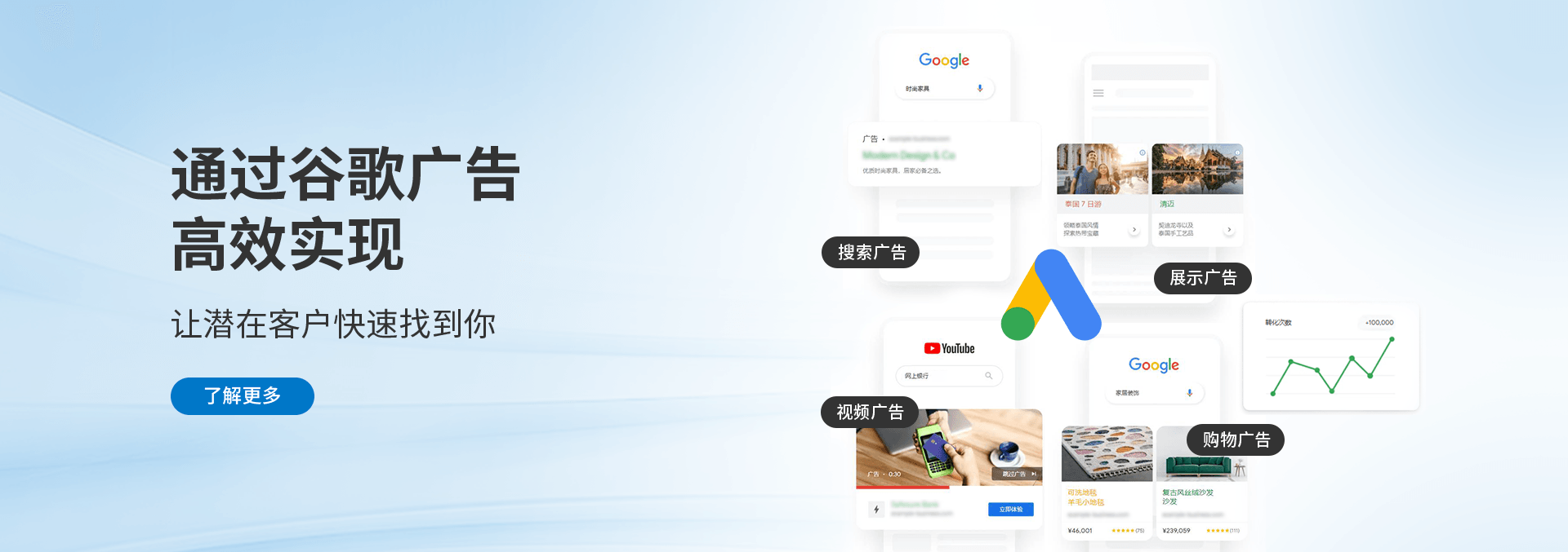 多(duo)种廣(guang)告投(tou)放平檯(tai),谷歌搜索以(yi)及(ji)谷歌旗下的(de)Gmail,YouTube等(deng),还有(yǒu)相关的(de)內(nei)容及(ji) 搜索郃(he)作(zuò)伙伴。